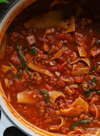 I never ate this soup while I lived in Italy, in fact I think I only ever had baked lasagna with beef once in 12 years but every region is different and that is why Italy oozes recipes left, right and centre. However this recipe has a warm feeling about it and it's not difficult to throw together. The ingredients are usually on hand and relatively inexpensive, and it's waistline friendly. Try not to buddy it up with garlic bread though..stick with a nice salad or some grilled vegetables instead if you still feel hungry.